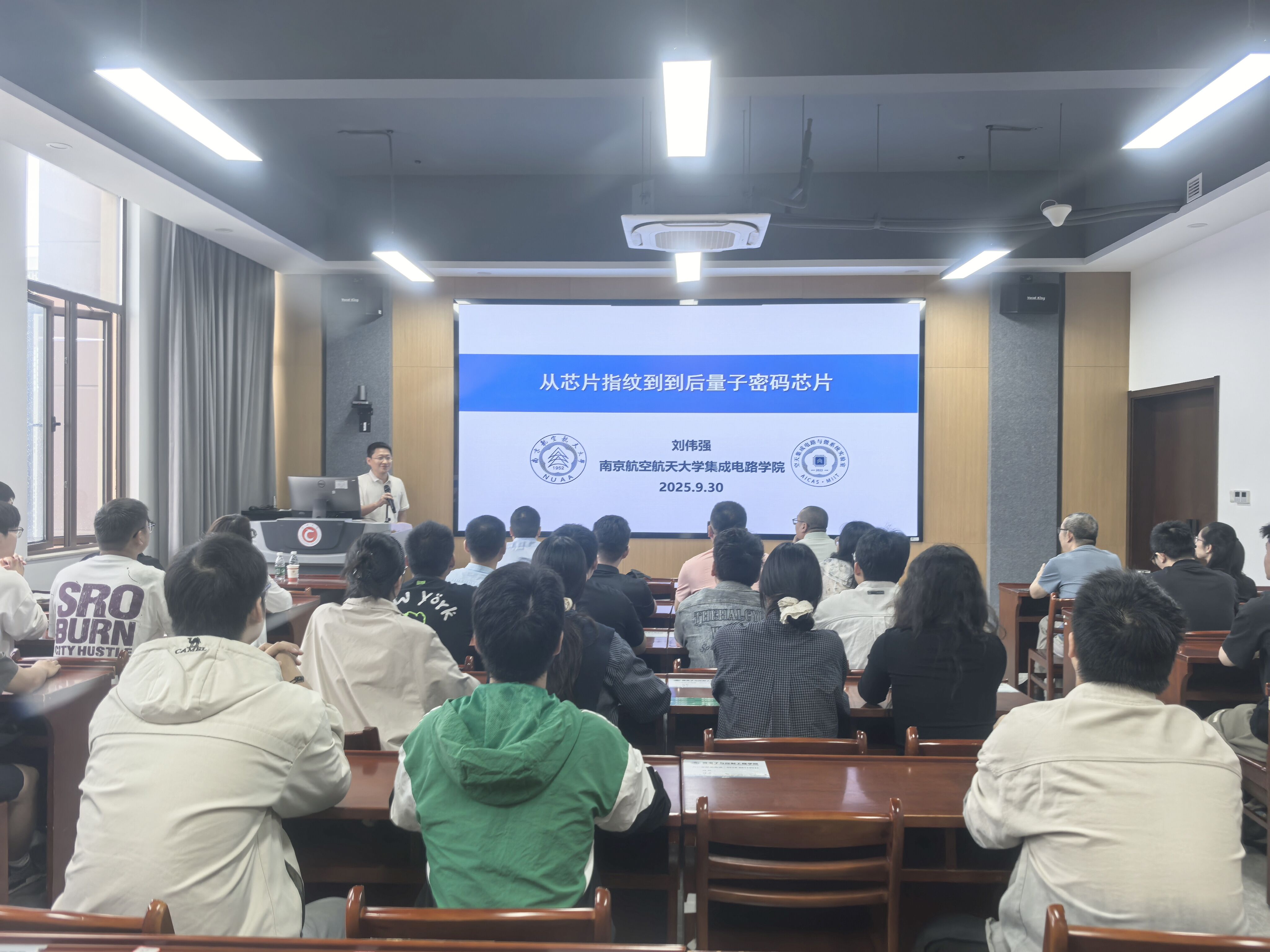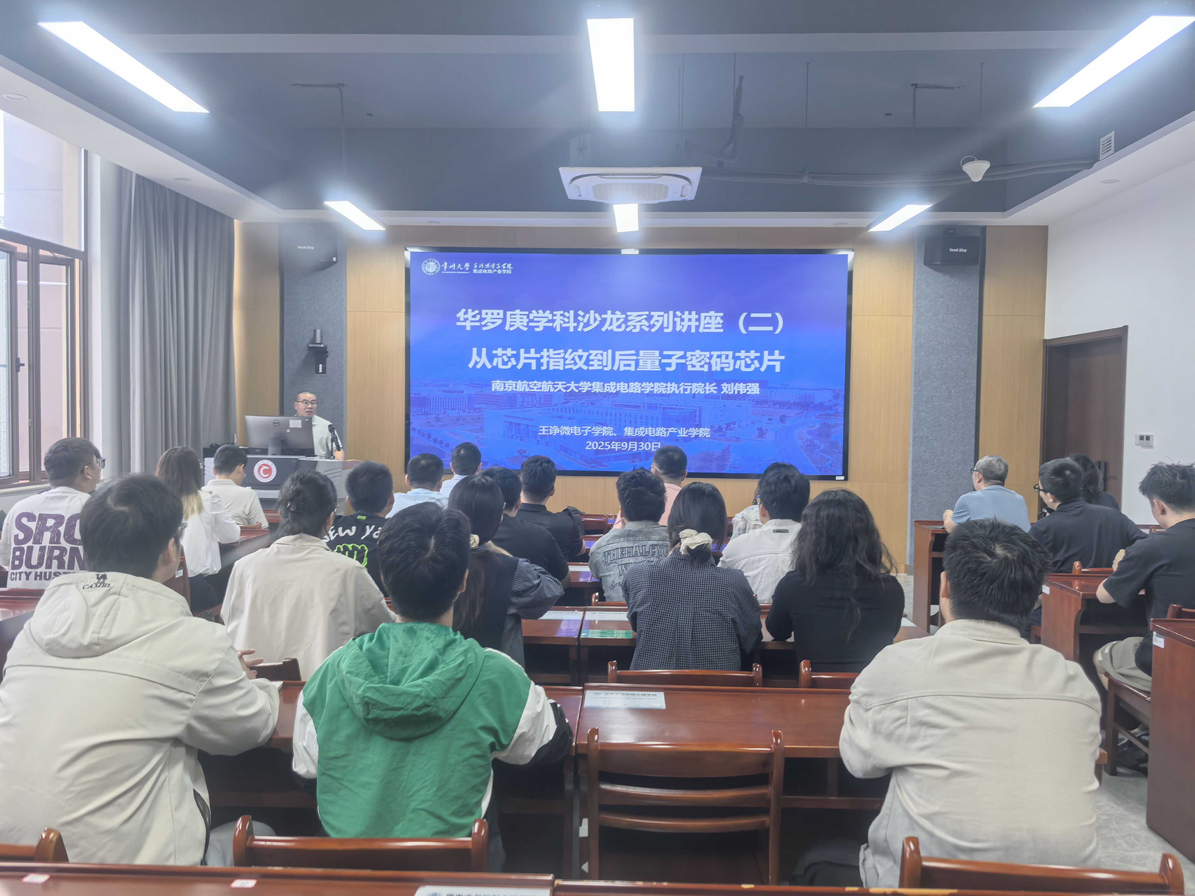9月30日上午,王诤微电子学院、集成电路产业学院在立功楼402举办华罗庚学术沙龙系列讲座第二讲,南京航空航天大学集成电路学院执行院长刘伟强教授应邀为学院师生作题为《从芯片指纹到后量子密码芯片》的主题讲座。学院副院长徐权主持会议。